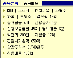 재무제표 : 매출액 하락, 부채비율 하락, 유보율 증가로 현금흐름의 비상인 경우는 아니지만 외형이 줄어드는 재무이다. 신용 매수가 가능한 종목이다.