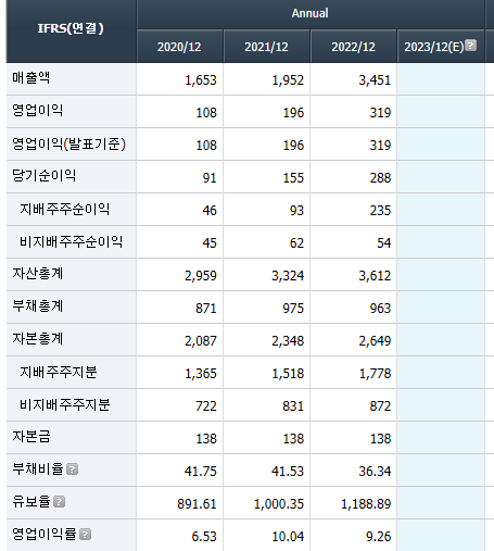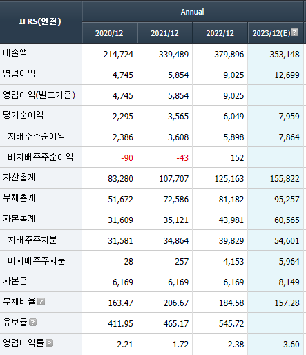 재무제표 : 매출액이 크게 성장하고 부채비율이 줄고 현금흐름도 더 개선되었다. 신용비율이 5.75%로 신용 매수가 가능한 종목이다.