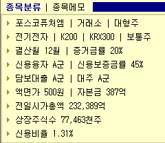 재무제표 : 매출액 상승, 부채비율 감소, 유보율 상승으로 보았을 때 현금 흐림이 있고 신용매수가 가능한 종목이다.